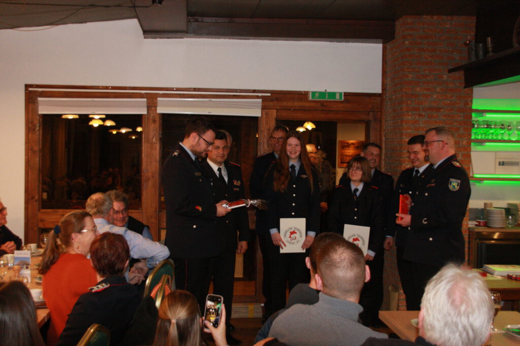 Anschließend beförderte Carsten Schwuchow die Kameraden Richard Hahnke, Tim Tetzlaff, Leonie Hansmann, Laura de Weerth und Seraphine Thalmann zu Feuerwehrmännern, bzw. -frauen.