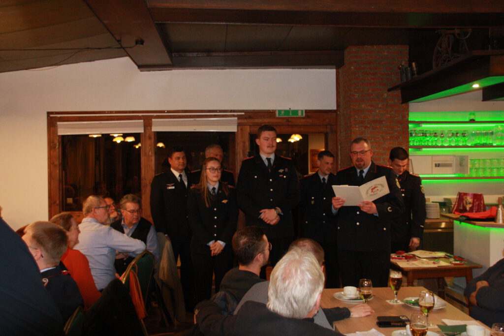 Nach zahlreichen Grußworten der Vertretern der Feuerwehren und der Politik klang der Abend bei gutem Essen und netten Gesprächen aus.