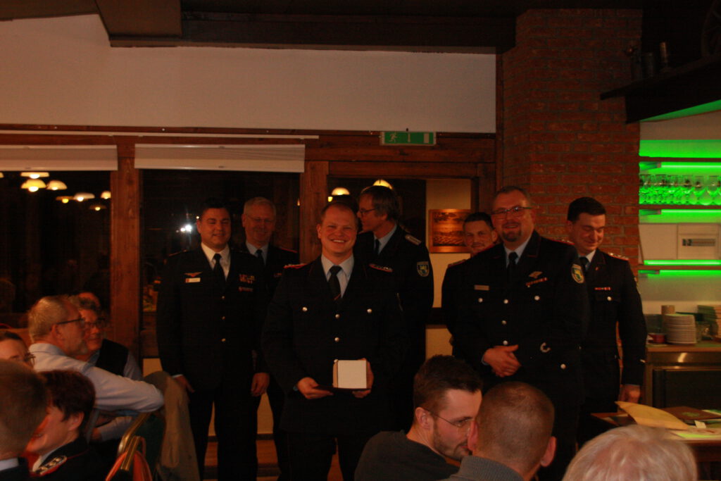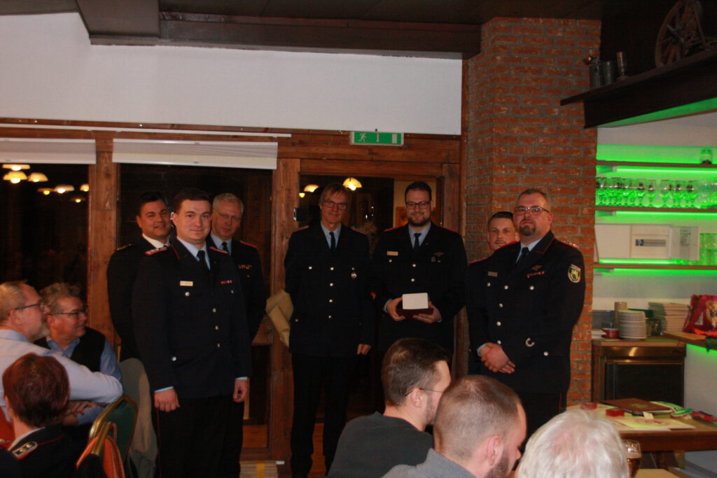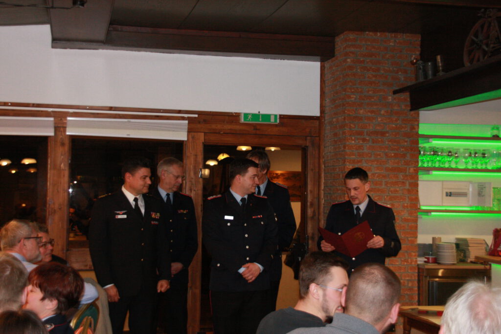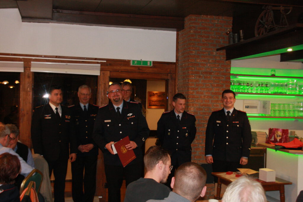 Danach hat der stellv. Gemeindebrandmeister Bastian Fiesel Julian Kaatz zum Löschmeister, Lukas Krok zum Oberlöschmeister, Björn Krok zum 1. Hauptlöschmeister und Carsten Schwuchow zum Brandmeister befördert.